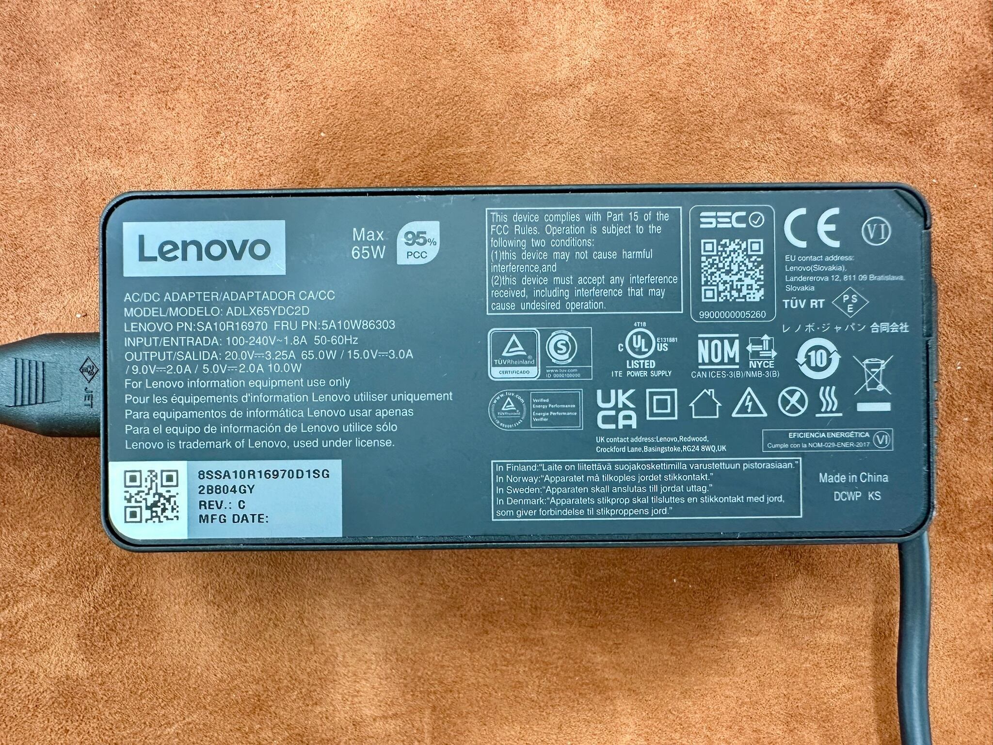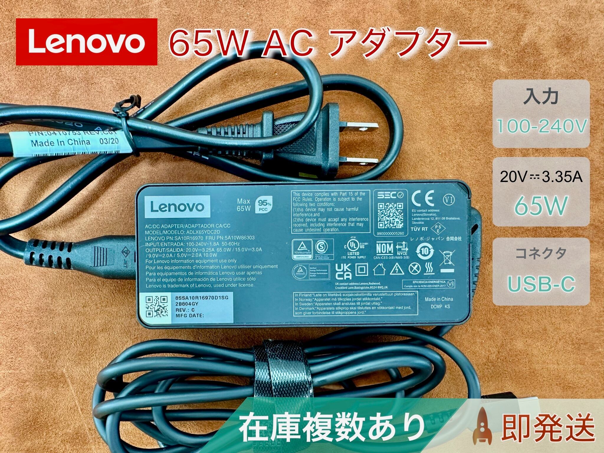 Lenovo 純正 USBC PD 対応 AC アダプター ADLX65YDC2D 65W(20V/3.25A)