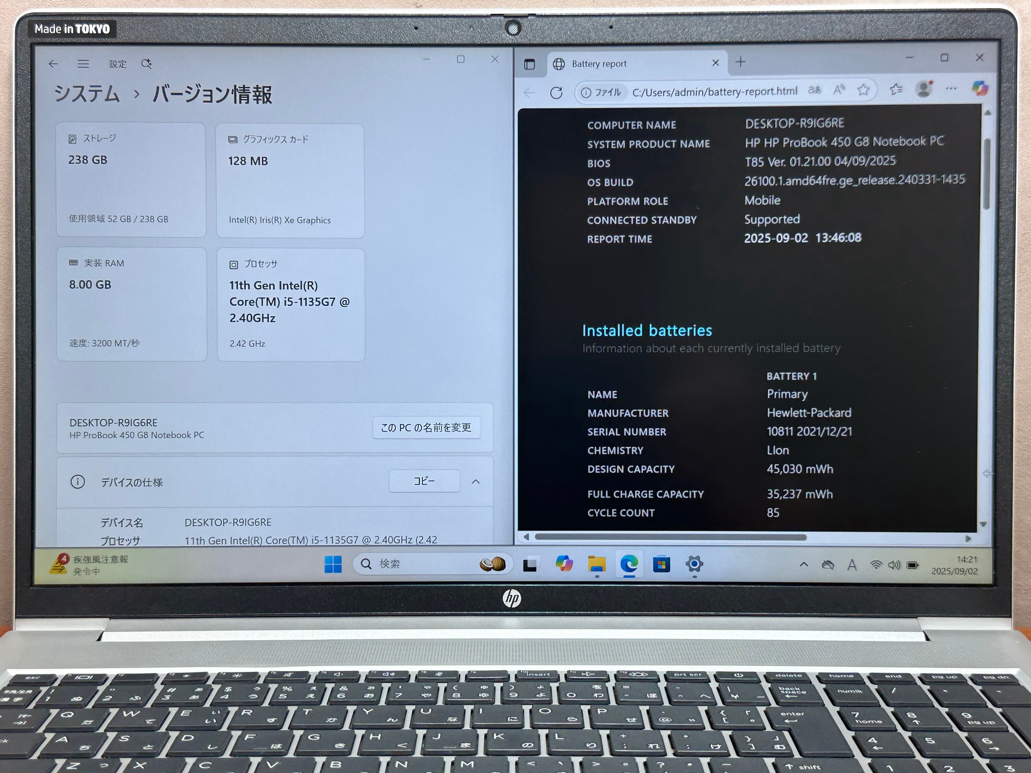 HP ProBook 450 G8 i5-1135G7 8GB 256GB 15.6インチ Office付 |1419|