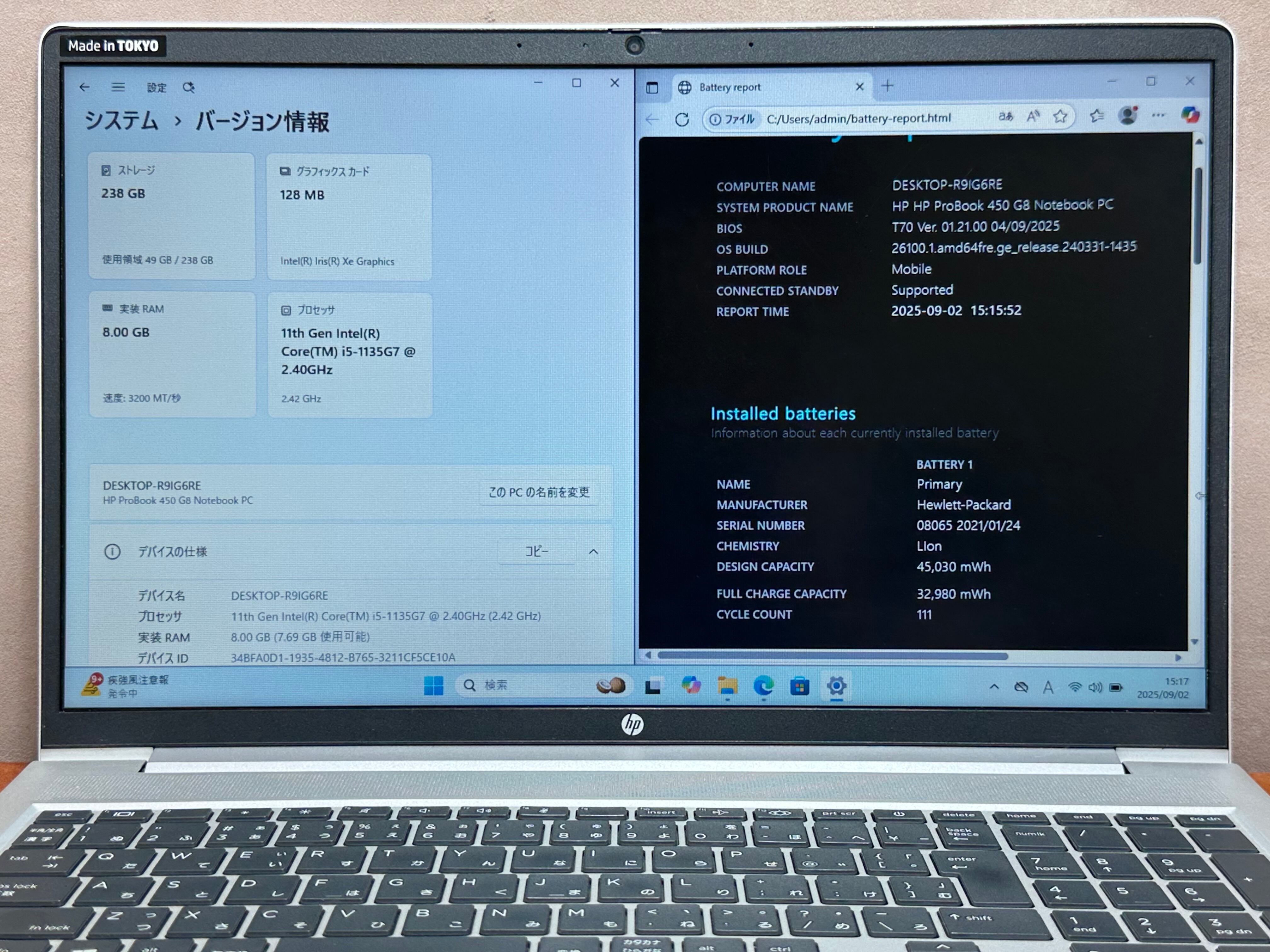 HP ProBook 450 G8 i5-1135G7 8GB 256GB 15.6インチ Office付 |1426|