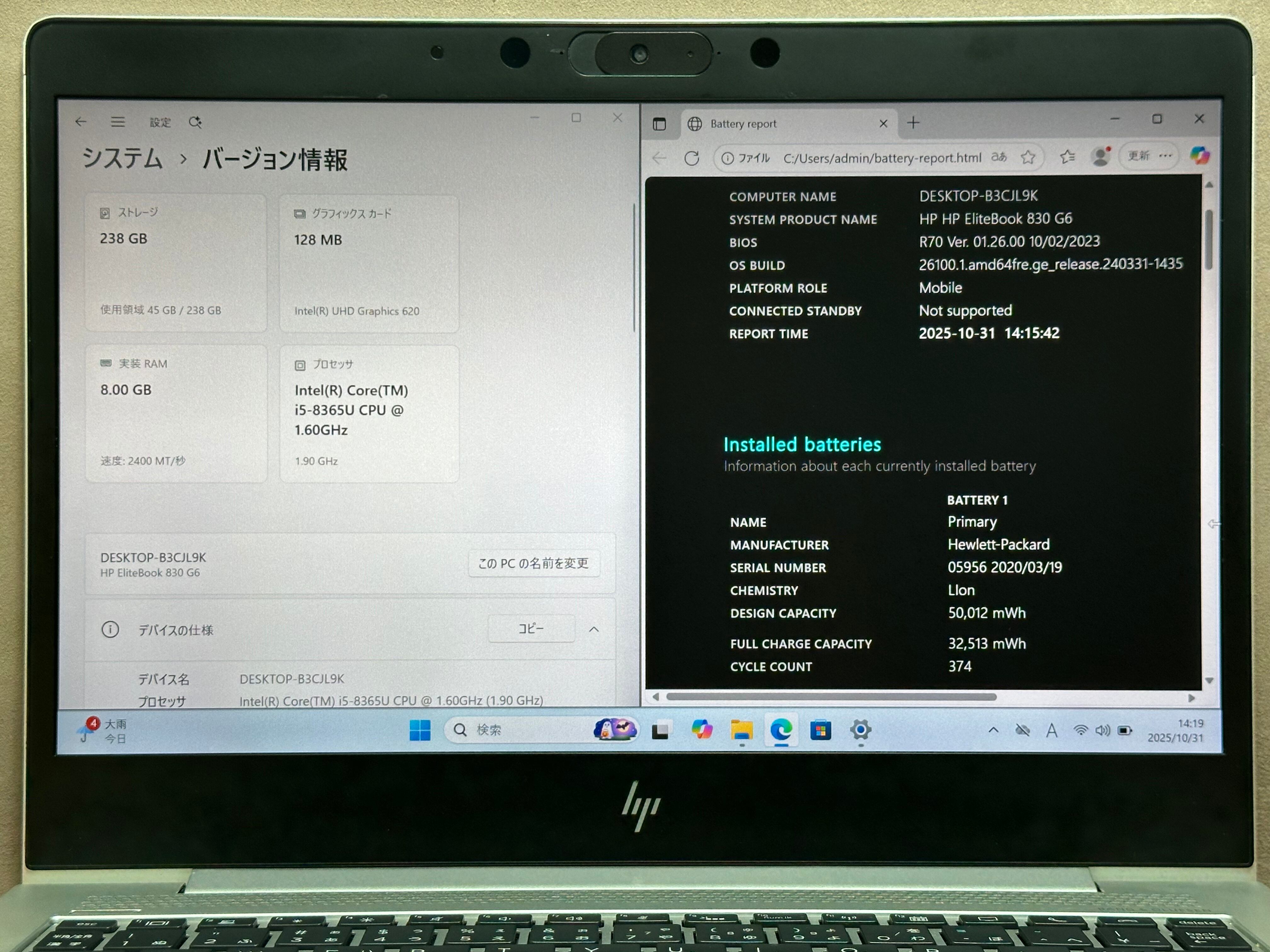 HP EliteBook 830 G6 i5-8365U 8GB 256GB 13.3インチ Office付 |2484|