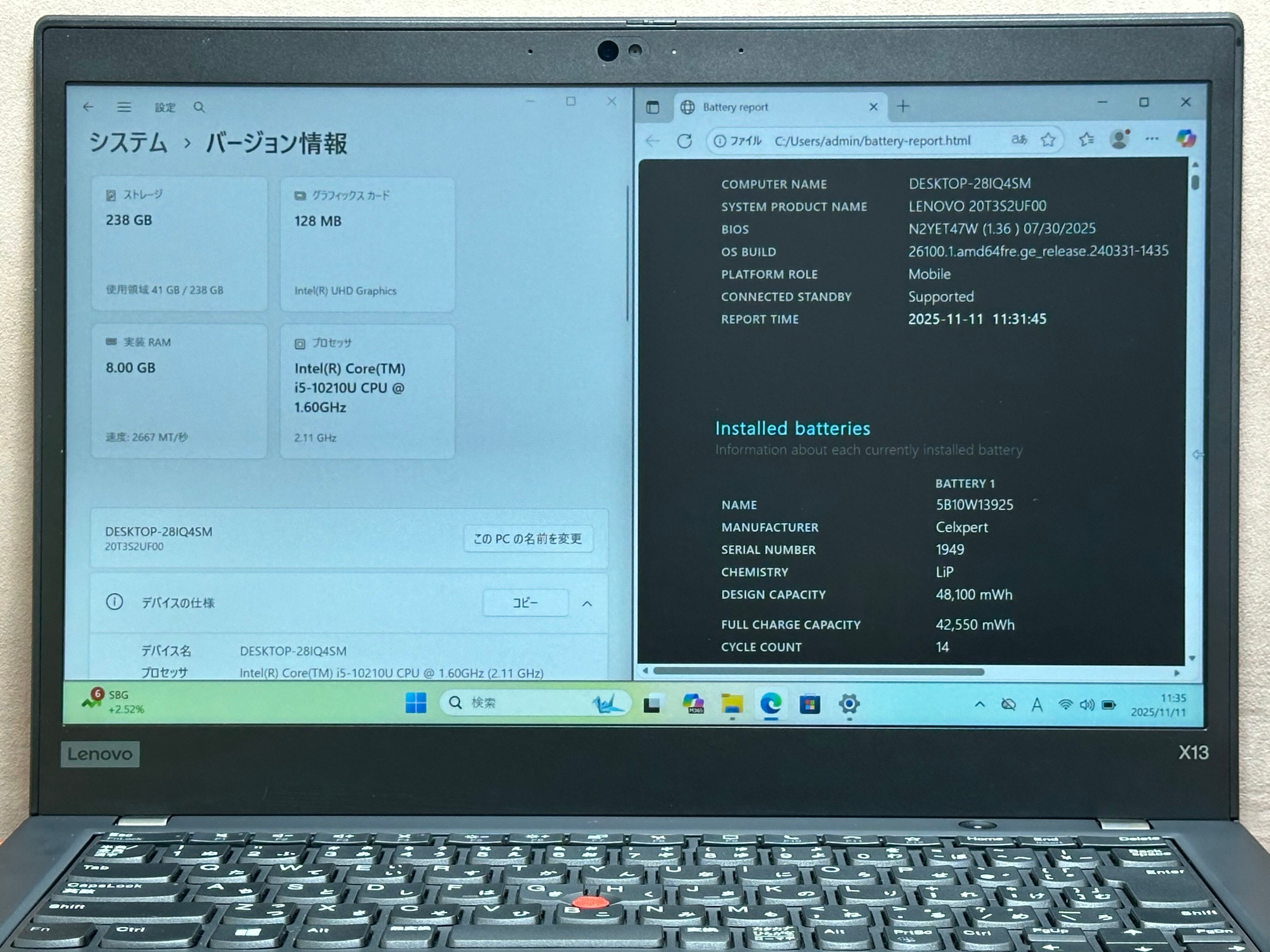 ThinkPad X13 Gen 1 i5-10210U 8GB 256GB 13.3インチ Office付 |2574|