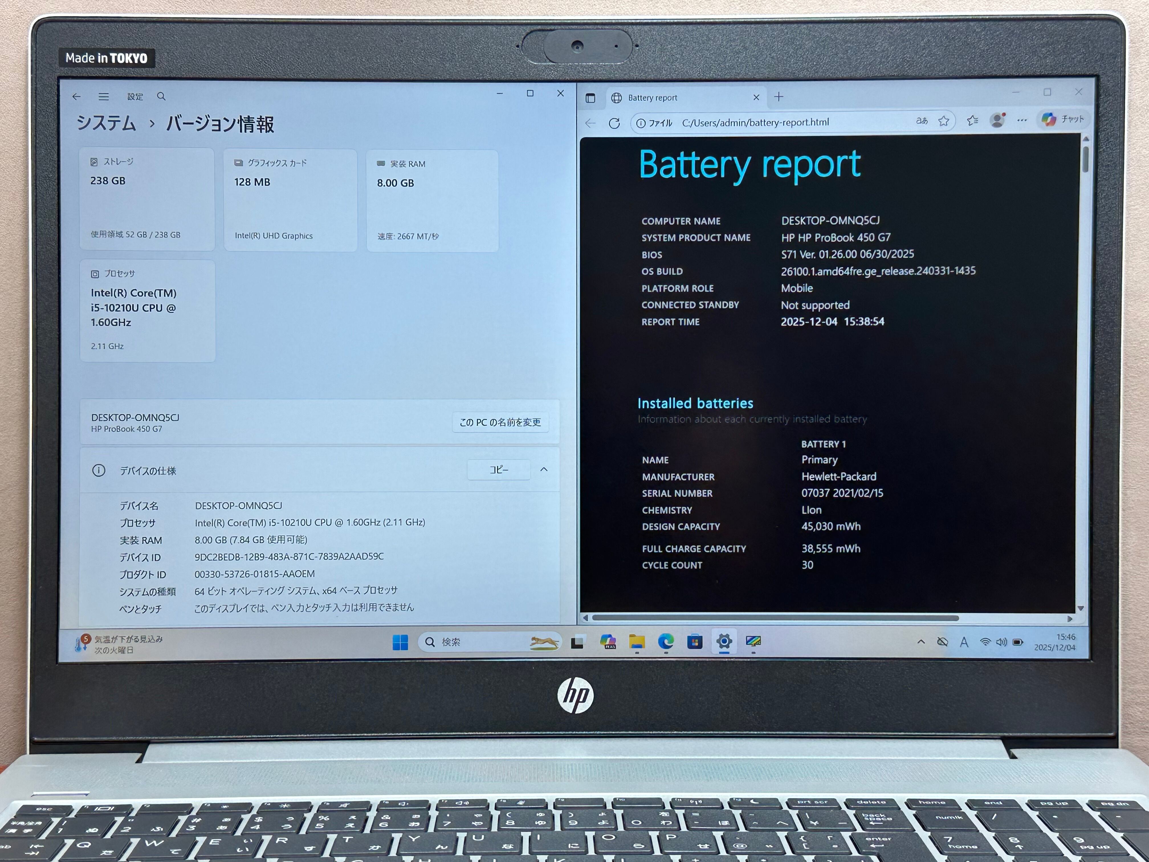 HP ProBook 450 G7 i5-10210U 8GB 256GB 15.6インチ |3225|