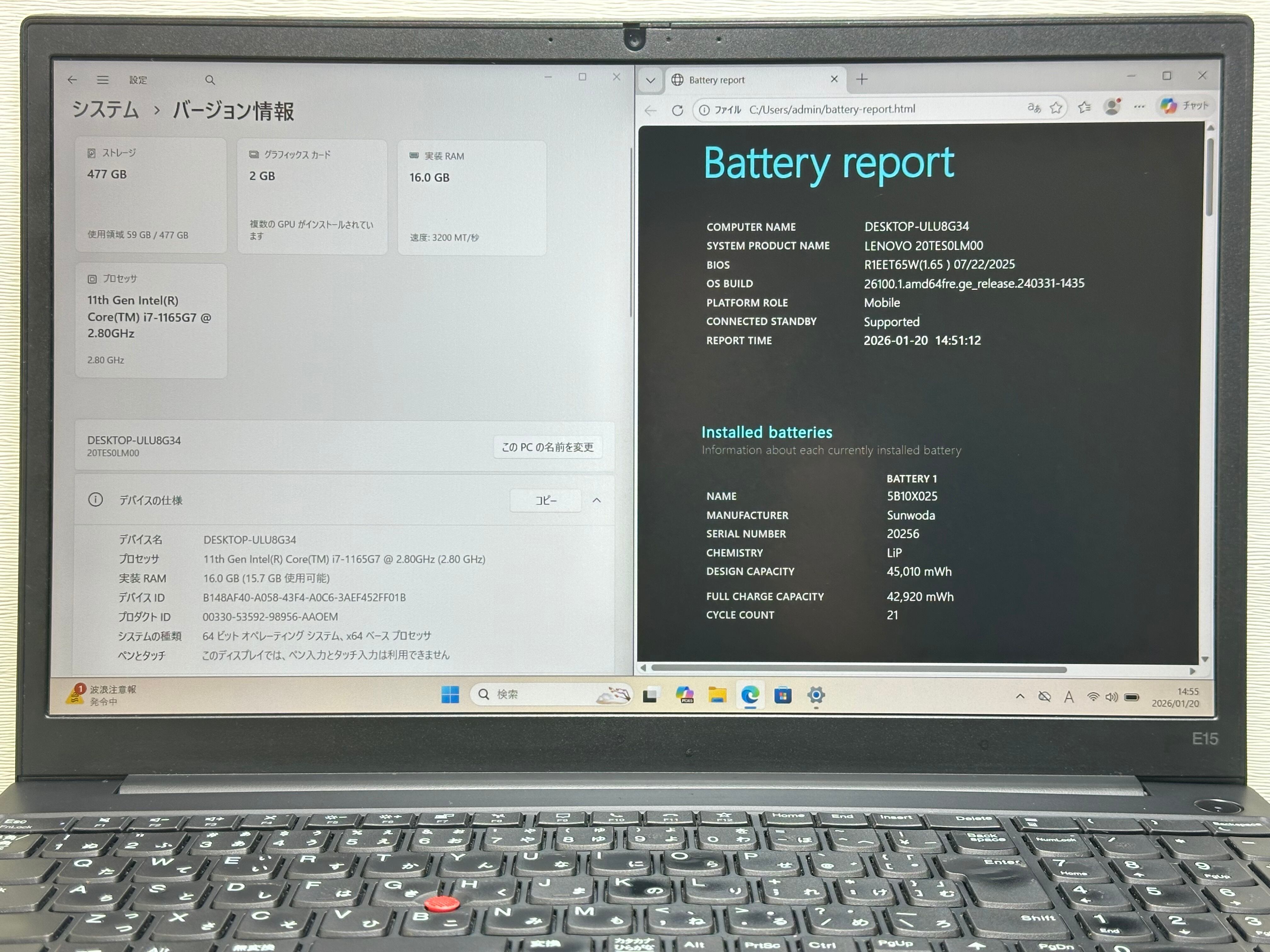 Lenovo ThinkPad E15 Gen 2 i7-1165G7 16GB 512GB 15.6インチ |3082|