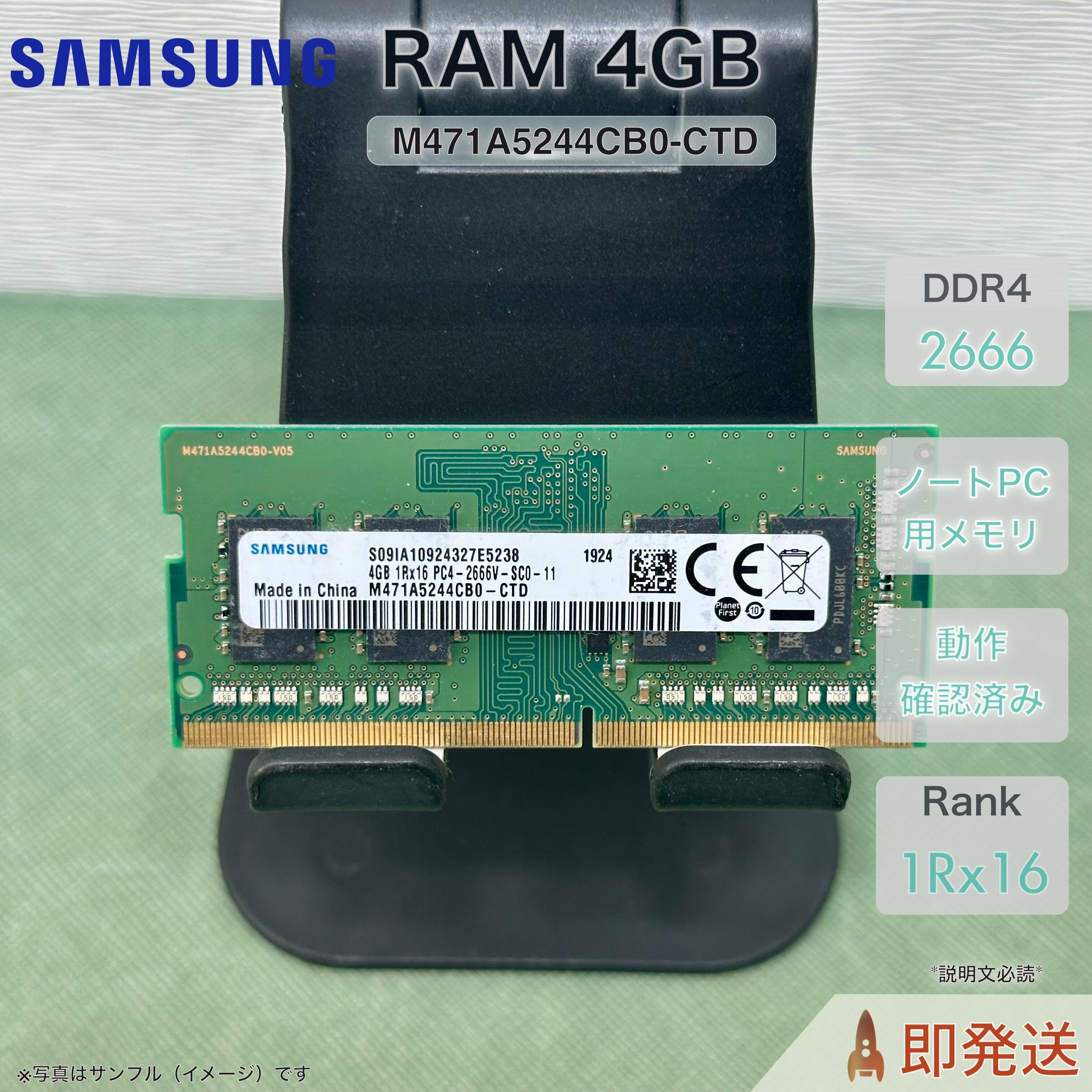 SK hynix | Samsung 4GB DDR4-2666V (PC4-2666V) 1Rx16 ノートPC用メモリ | 動作確認済み | 即発送 HMA851S6CJR6N-VK | M471A5244CB0-CTD