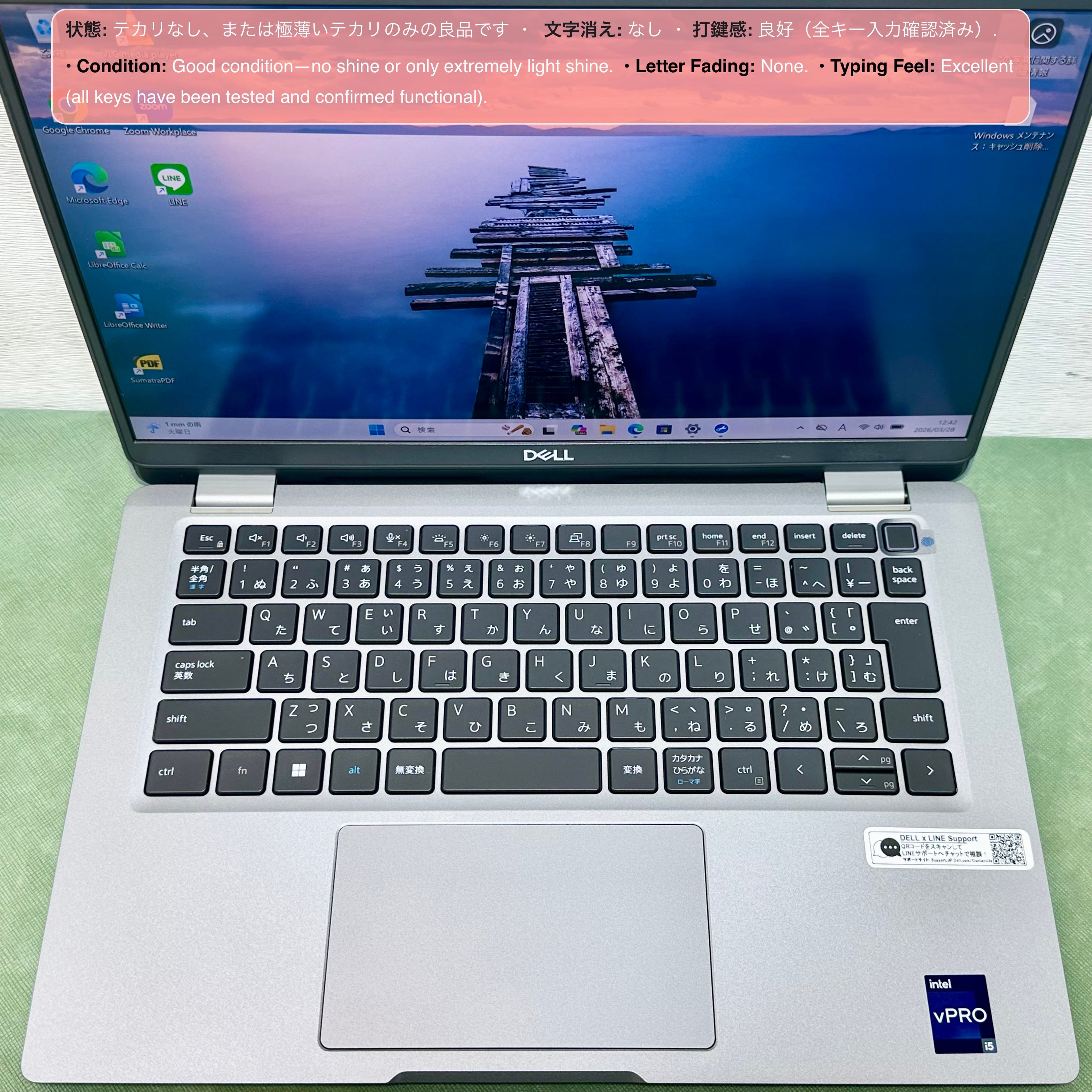 【キーボード】A : テカリなし、または極薄いテカリのみの良品です。文字消えはありません。