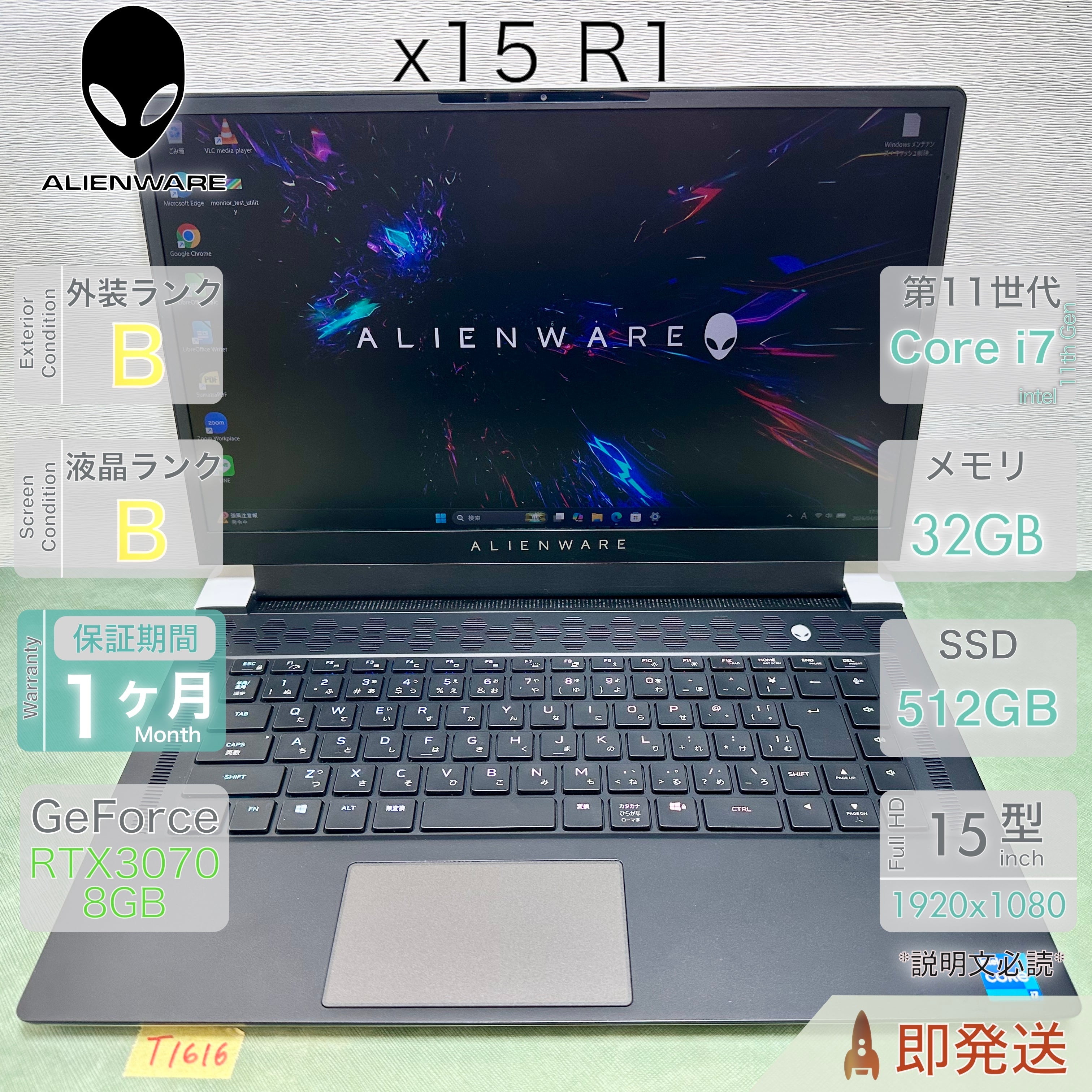 ALIENWARE x15 R1 Core i7 第11世代 メモリ32GB SSD 512GB RTX3070 8GB