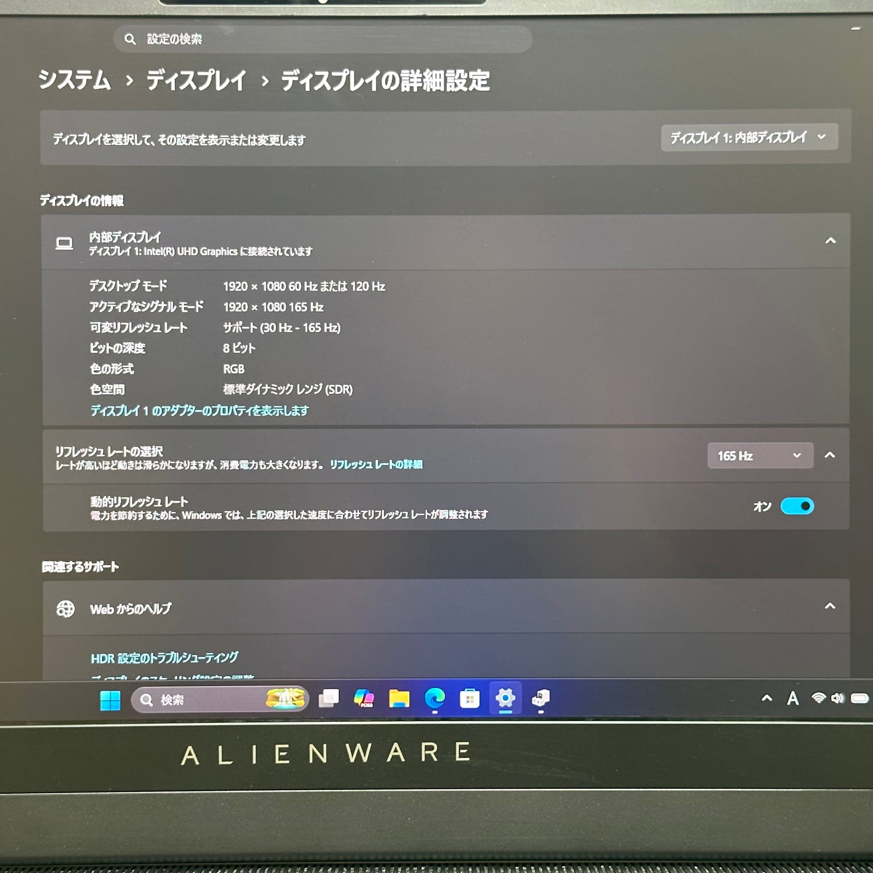 ・解像度: 1920x1080 165Hz